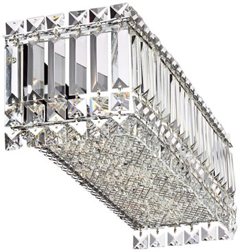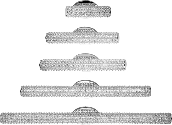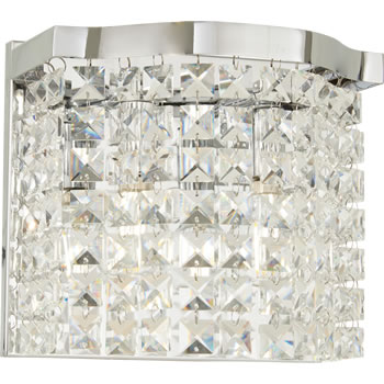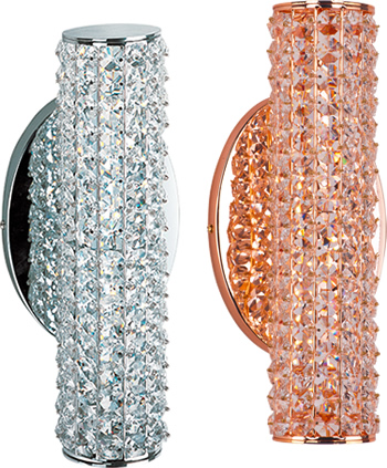 The Evermore wall fixtures offer a resplendant design of glamour and glitz. The abundance of multi faceted crystals are enhanced by the Polished Chrome finish and the supplied Clear Xenon bulbs showcase the sparkle of this sleek series.
