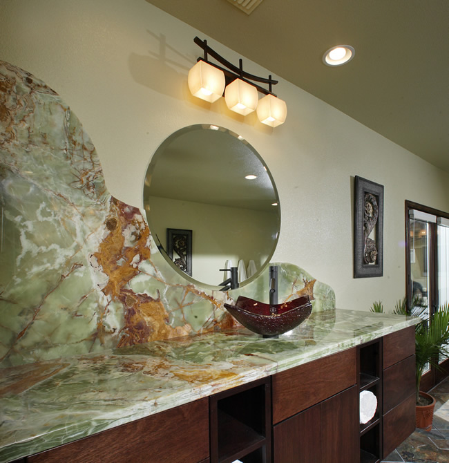 Finish: Aged Patina Iron with Natural Travertine Stone