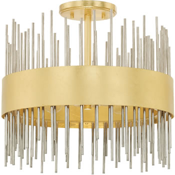 Slim reflective Polished Nickel rods of varying lengths enveloped by a Capital Gold band create a jewelry-like form.