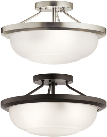 The double-shade design of this semi-flush ceiling lamp still delivers the sleek, clean and minimalistic elegance the Exos Collection is known for, but adds another visual element with the inclusion of an interior drum shade.