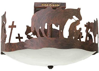 Rustic western lighting featuring the perfect indoor ceiling light for your Ranch or Western themed decor. Scenes ranging from rodeo scenes to horses and cowboys.