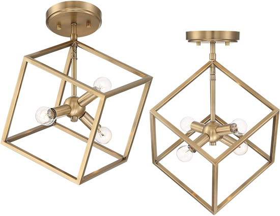 Mid-Century Modern Geometric Eclectic semi-flushmount ceiling light is an open cube form around modern Sputnik inspired arms.