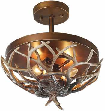 Log Barn A03436 2-Light Antler Ceiling Semi-Flush Light