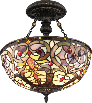 Quoizel TF1714VB Semi-flush Mount Stained Glass Ceiling Light from the Carroll Collection