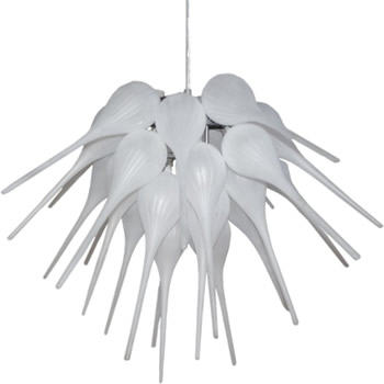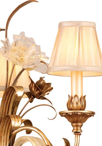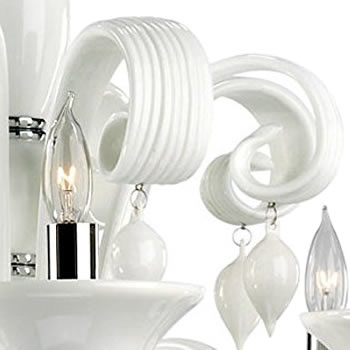 The crafting technique of the Venetian glasswork masters comes to life in the Firolia family. Inspired by the original artistry of the Italian artisans, curved ivory glass arms are encircled by luxurious roped glass. The tranquil chandelier bulbs are set in the uniquely curled lips of the shades and are accented by tantalizing dropped crystal-cut accents. Firolia is at once both complex in its design and simple in its ministration of quality vintage lighting.