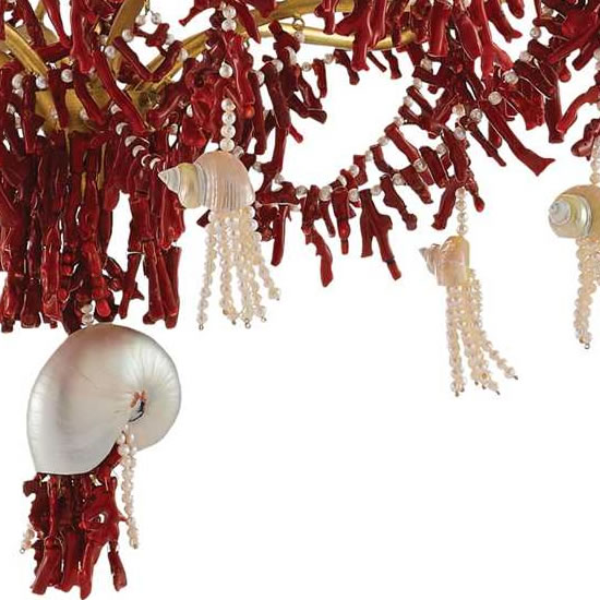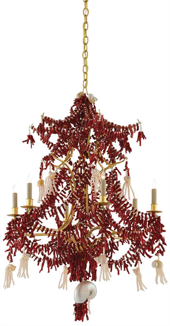 More Rococo than Art Nouveau, this romantic small chandelier from Corbett Lighting incorporates many of the natural elements that appeal to those who love Art Nouveau.