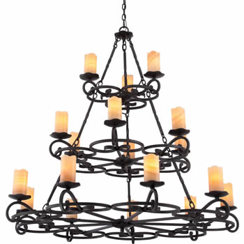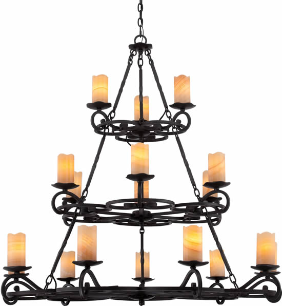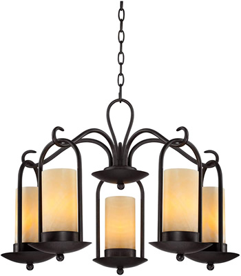 With a traditional ironwork design, this espresso outdoor chandelier and matching wall sconce offer classic styling for your porch, patio, or other covered exterior space. The graceful frames are finished in deep espresso set off by gorgeous onyx stone faux candles, giving this fixture extra warmth and appeal. Looks just as good when used in indoor spaces.