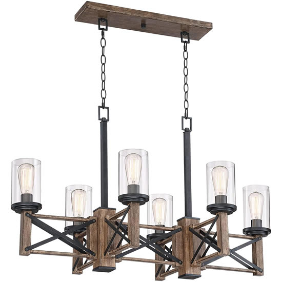 A naturally themed design the Chamber collection is a force of nature with rustic sensibilities and a touch of whimsy. The leafy scrolling vines are encompassed within curved wood beams belted with a metal band in a Darkest Bronze finish. The rich walnut stain on the wood is matte and highlights the aesthetics of the wood.