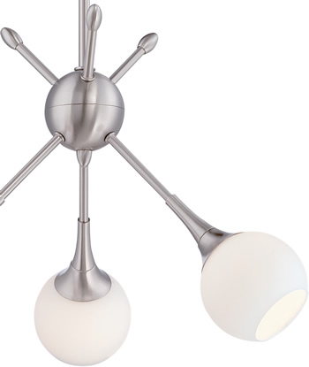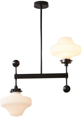 Vintage schoolhouse lighting gets an up-and-down design twist in this eclectic pendant light. Black matte metal arms contrast boldly with the milky white glass shades, adding a modern and industrial touch to your space.