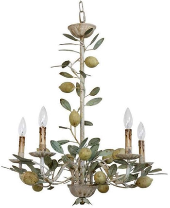 Toleware vintage style chandelier with lemons, limes and leaves