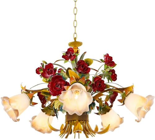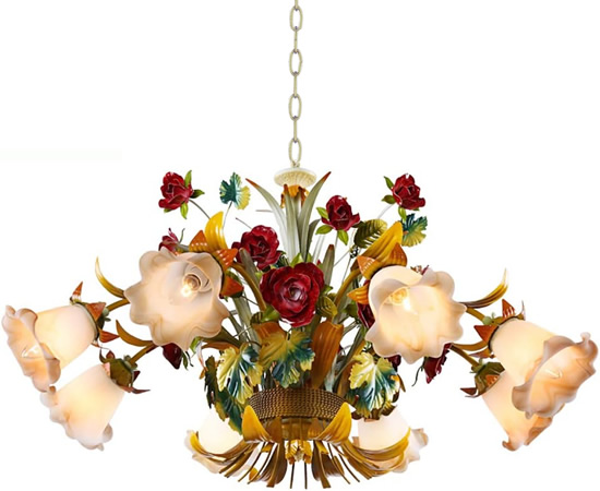 AF Lighting 7050-6H Ramblin' Rose Small Italian Tole Chandelier