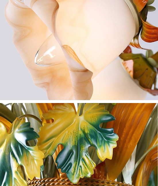 With its lustrous gold finish, textured leaves,and dramatic look, the Gold Leaves and Glass Chandelier gives any room a vintage feel. This striking piece fills any space with a luminous glow and impressive retro style.