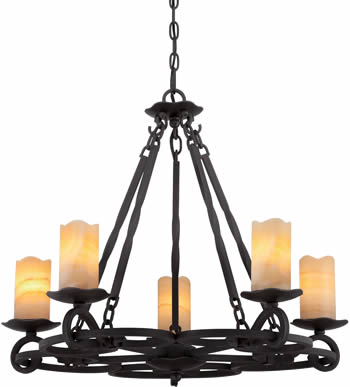 Franklin Iron Works LPH-9047/5 Onyx Stone Outdoor Chandelier