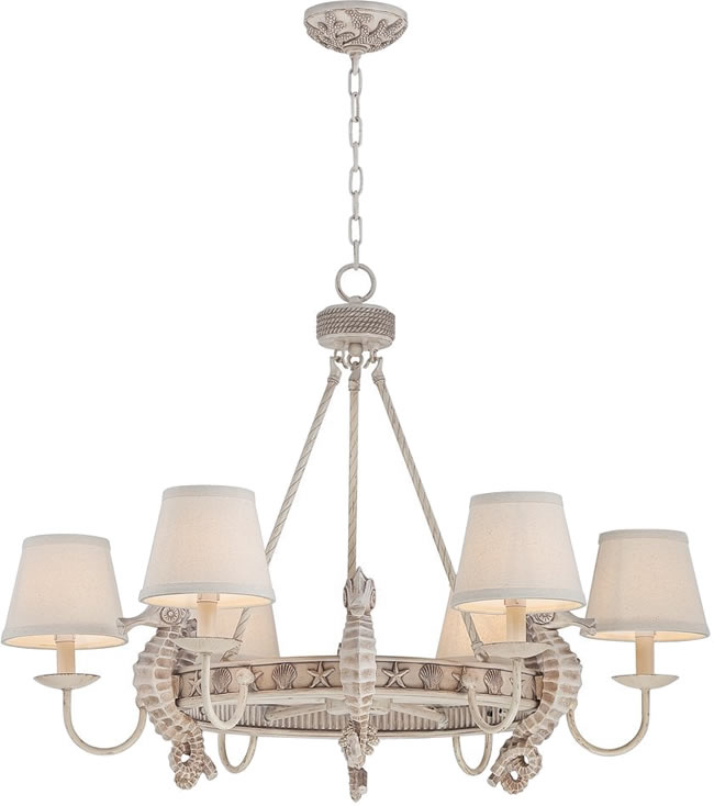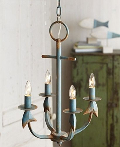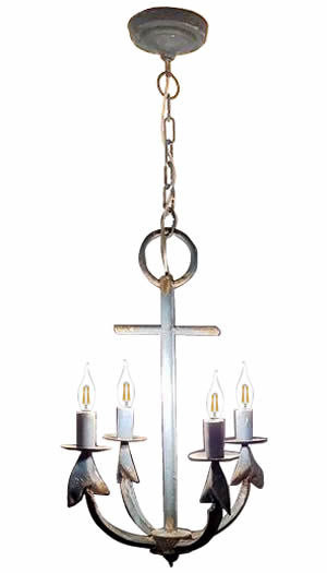 This whimsical small anchor chandelier is designed to look like it is fashioned from something found on the beach. Ideal for a small foyer or over a dinette table in your beach house!