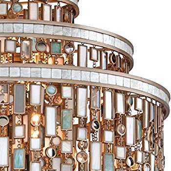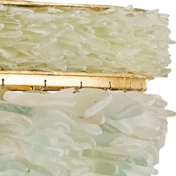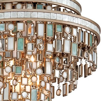 Frosted glass shades trimmed in a stunning Topaz Leaf finish accented by faceted glass medallions and beaded metal tassels. Bliss is a vision of traditional elegance radiating pure opulence.