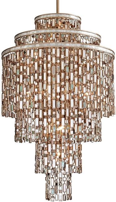 Corbett Ciro Collection: Corbett Lighting creates unique pieces that must be seen to be believed. With the craftsmanship of jewelry, the striking Ciro Collection uses glass, clasped within a metal frame.