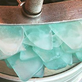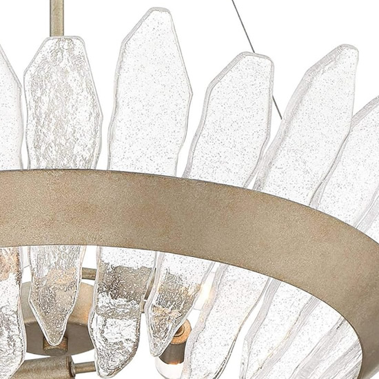 Decorative Elements: Grey Tinted Clear Art Glass Icicles with a strip of Amber, Blue or Green