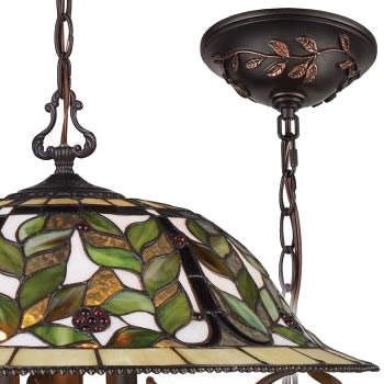 A frosted glass shade trimmed in a stunning Topaz Leaf finish is accented by a faceted glass medallion and beaded metal tassel. Bliss is a vision of traditional elegance radiating pure opulence.