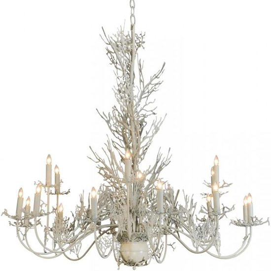 Rainforest Chandeliers may bring out Mother Nature's jealous streak given the fixture has transformed one of her most poetic perennials into elemental illumination. Fourteen lights are nestled within the hand-forged iron branches that form the arms of this fixture, each limb treated to a rustic bronze finish. Currey and Company offers the chandelier in Rustic Bronze, Gesso White and Silver Leaf finishes.
