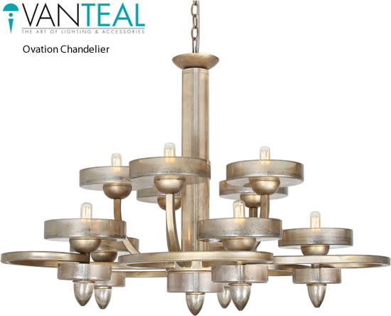 Van Teal Ovation Chandelier puts a modern spin on the classic chandelier with a multi-tiered design of open, circular Candelabra holders. This gleaming chandelier captivates with a Tiffany Gold finish that catches and reflects the light to create a warm, inviting ambience. Cast of sturdy metal, this chandelier has a sleek, polished look that brings a touch of elemental style to your living space.