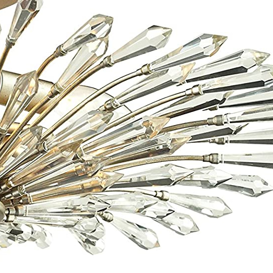 A brilliant openwork diffuser formed of arrays of crystal spears highlight the design of the Andromeda collection. Overlapping steel wires, finished in Aged Silver, form a gently curved shape. Crystal spears sparkle when illuminated yet still fascinate when unlit.