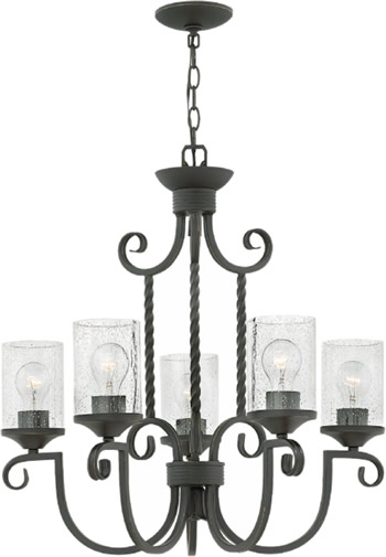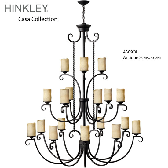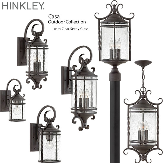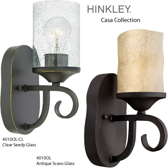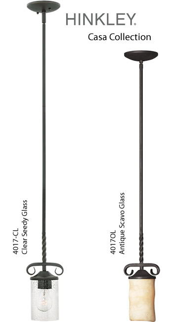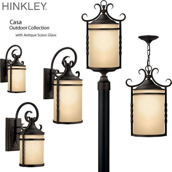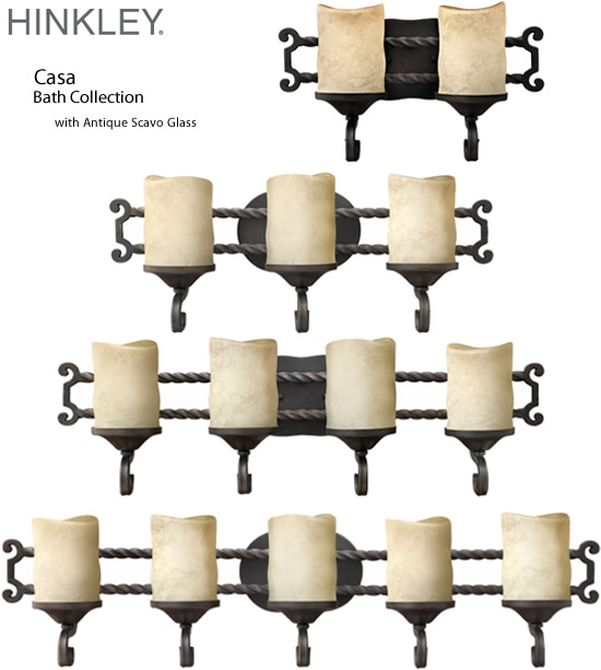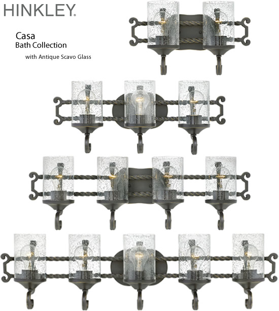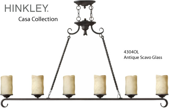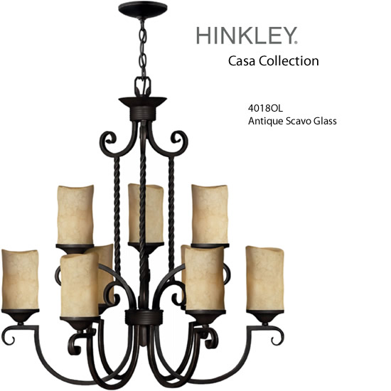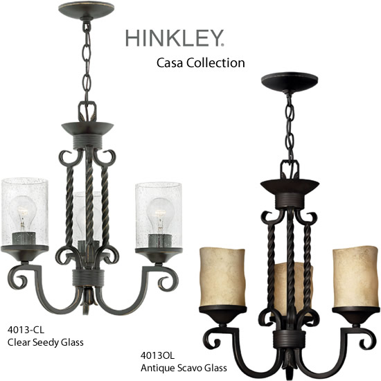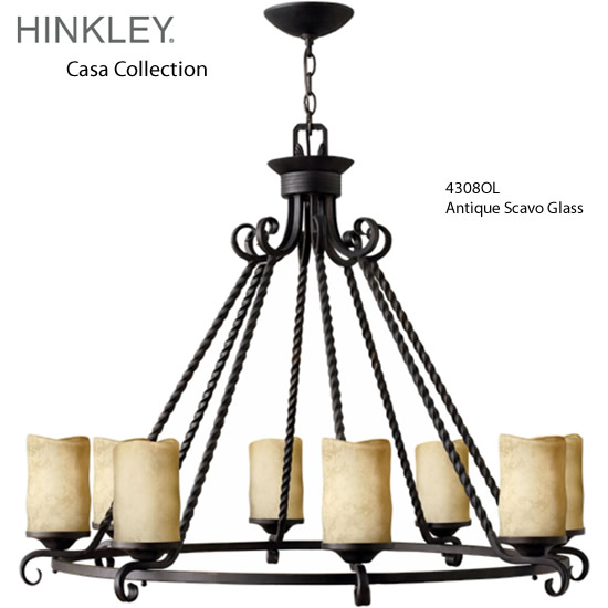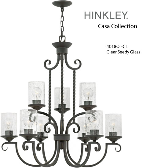 Casa by Hinkley Lighting makes the most of its fine details: individually unique antique scavo or clear seeded glass. Twisted wrought iron and hand-forged scrollwork in an finish complete its rustic-chic appeal with a Southwestern flair.