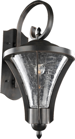 Traditional Medium Wall Bracket Aluminum Frame, Tapered Clear Crackle Glass, Indoor/Outdoor Application