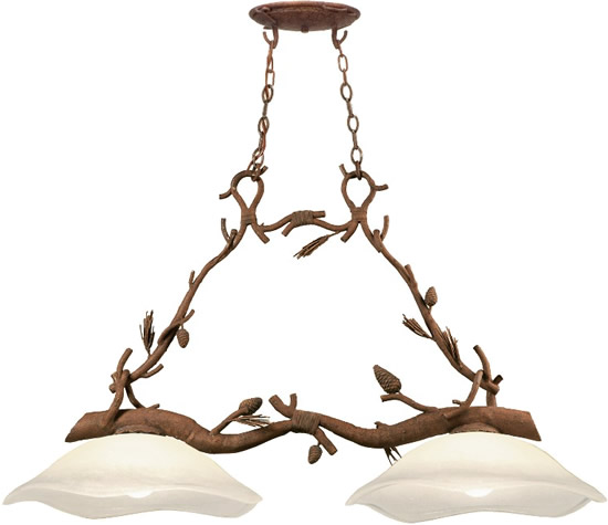 Nature comes to light with the rustic Kalco Ponderosa Collection, featuring pinecones, pine needles and branches of simulated bark.