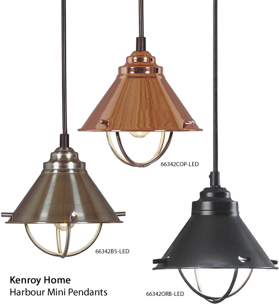 Kenroy Home 66342BS-LED, 66342COP-LED, 66342ORB-LED Harbour Mini Pendants