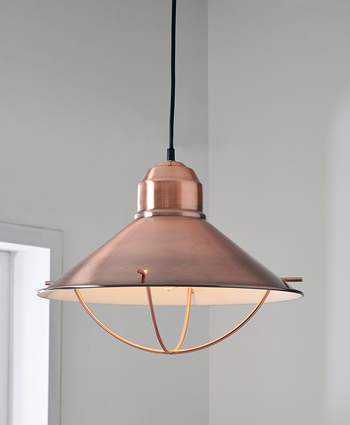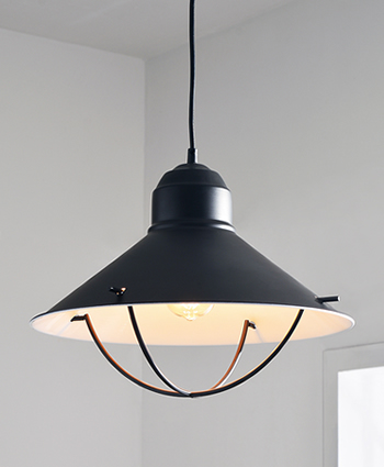 Farm House or Beach House, the Harbour Collection is the ideal look at the ideal price. Choose Brushed Steel, Copper or Blackened Oil Rubbed Bronze finish with a Reflective White interior. They all ship complete, with black cable, wire guard and coordinating canopy.