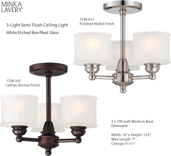 Minka-Lavery 1738-167, 1738-613 3-Light Semi Flush Ceiling Light