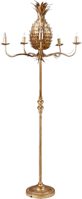 The unique lighting in A & B Home's Pineapple Collection reproduce vintage designs. They are made of iron and finished in antiqued gold.