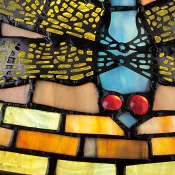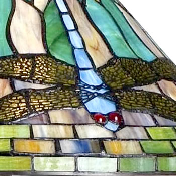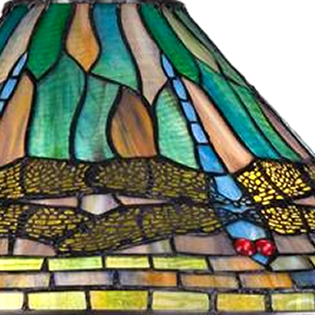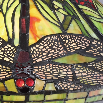 With varying shades of green and splashes of rich red the Jungle Dragonfly table lamp is the perfect Tiffany style. The intricate cut-outs on the metal wings showcase the beauty of the glass and the dragonfly motif on the shade. Glass color in Tiffany lighting products vary in color. No two pieces are identical.
