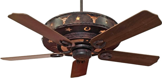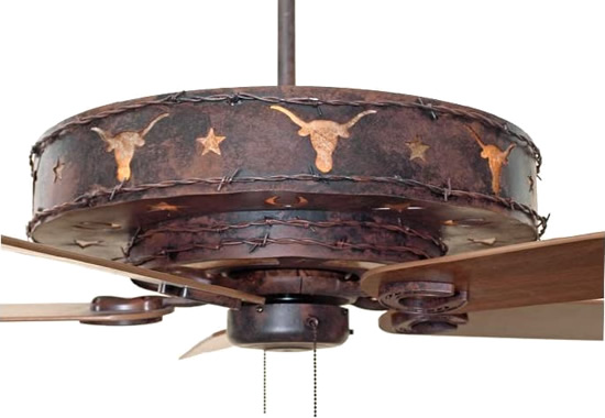 Longhorn Steer, Stars and Barbed Wire Western Ranch Style Ceiling Fan