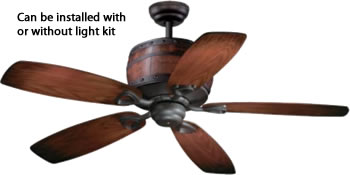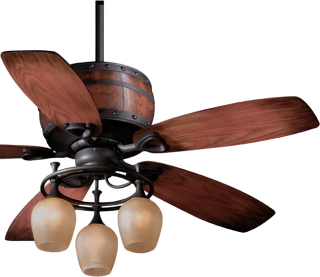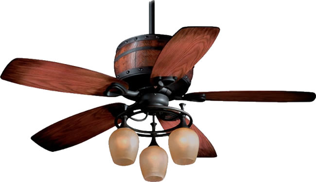 For a rustic look straight out of wine country, this ceiling fan has a body made to look like an old wine cask.