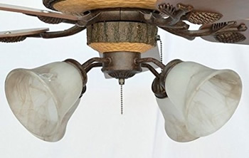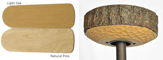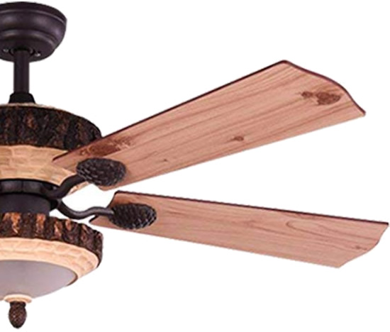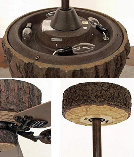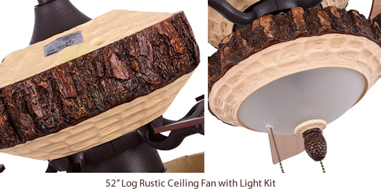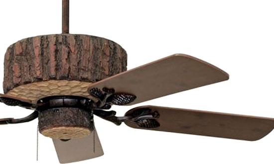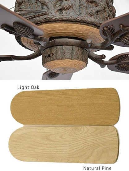 The Pine Valley ceiling fan replicates the look of a freshly cut pine log. The rough bark finish is realistically hand painted to mimic real tree bark. This pine log theme is also included in the mounting hardware attaching to your ceiling with a 4.5" downrod. The 52" reversible Walnut or Teak blades attach to the motor with included Pine Cone Medallions.