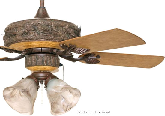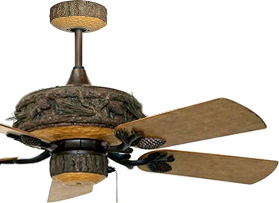 The Exclusive Forest Breeze Ceiling Fan by Copper Canyon brings the forest indoors with its beautiful hand painted pinecone style. Included 52" blades feature pine cone medallions connecting the blades to the motor.