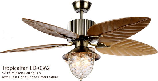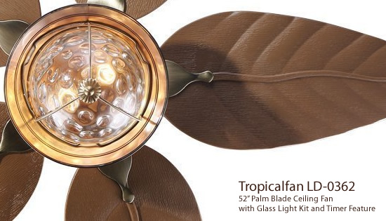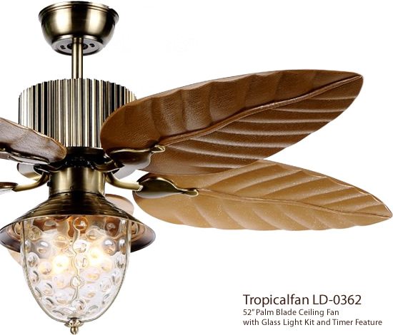 Tropicalfan LD-0362 52 Inch Palm Blade Ceiling Fan with Glass Light Kit and Timer Feature