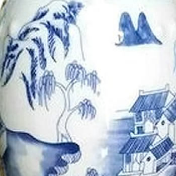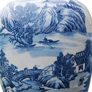 Blue and White Urn Landscape Table Lamp