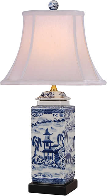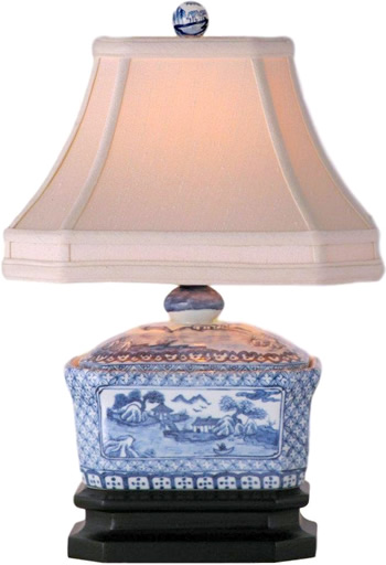 Asian Style Furnishing East Enterprises LPDBWS088A 16" Blue Willow Tea Caddy Table Lamp