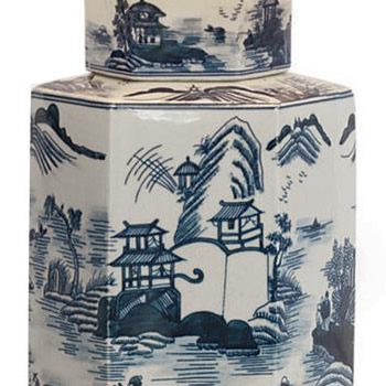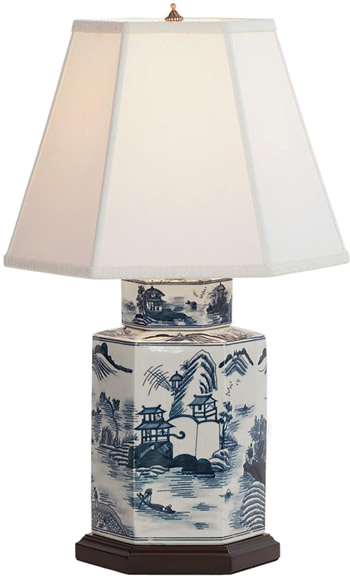 16" Blue Willow Tea Caddy Table Lamp