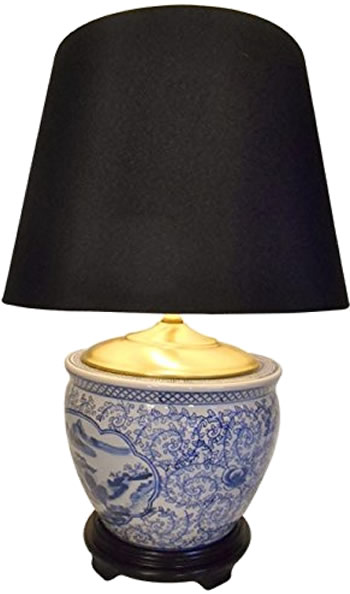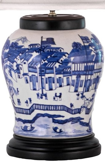 Universal Lighting and Decor LPDBFJ1010Q Blue Willow Hang Kong Harbor Table Lamp
