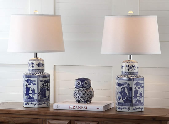 Safavieh Lighting LIT4243A-SET2 23.5" Judy Blue and White Chinoiserie Table Lamp Set