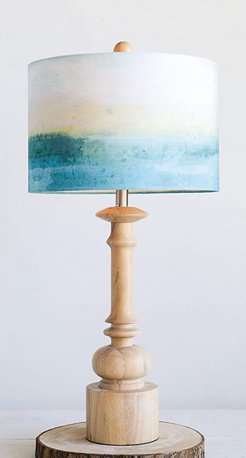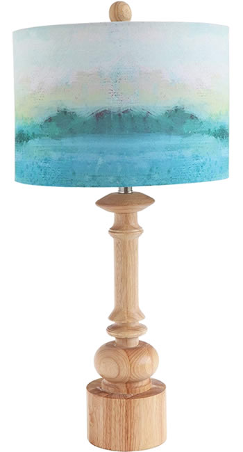 Not just a lamp, this shade is a piece of art. The colors blend beautifully into an impressionist oceanscape. It sits atop a natural finished lathe turned lamp base.