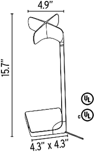 15.7" high, 4.9" deep