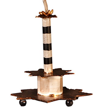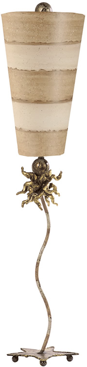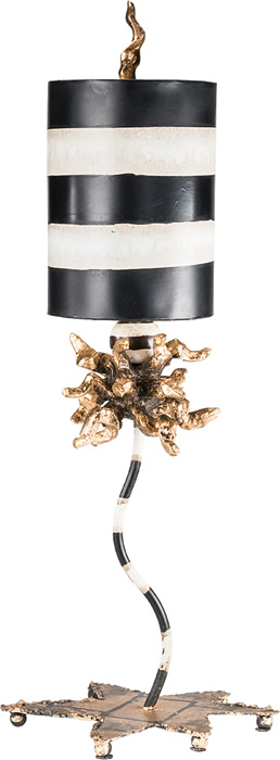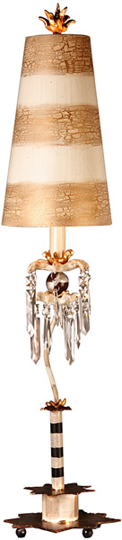 A mix of all the Flambeau favorite elements, the Le Cirque Table lamp stands 40" in height and has a striped inverted cone shade with a hand finished curled finial.