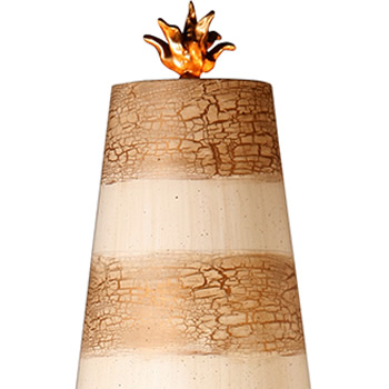 Finish: Taupe and cream striped stem with gold leaf elements
