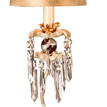 Finish: Black and putty striped stem with gold leaf accents and crystal clusters