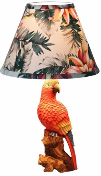 Tropical Parrot Table Lamp with Hawaiian Print Shade