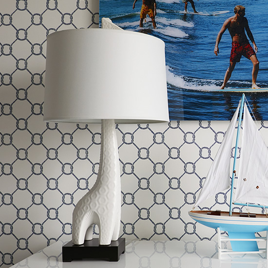 he perfect height of 25" and a base of 8" can work in any room. The cream and black shade adds drama and the star shaped base finishes the designer's favorite.
